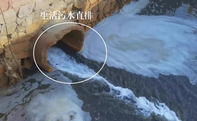 圖為2021年12月5日,中央生態環保督察組現場督察發現,松浦支渠松浦排澇橋下雨水口大量生活污水直排。