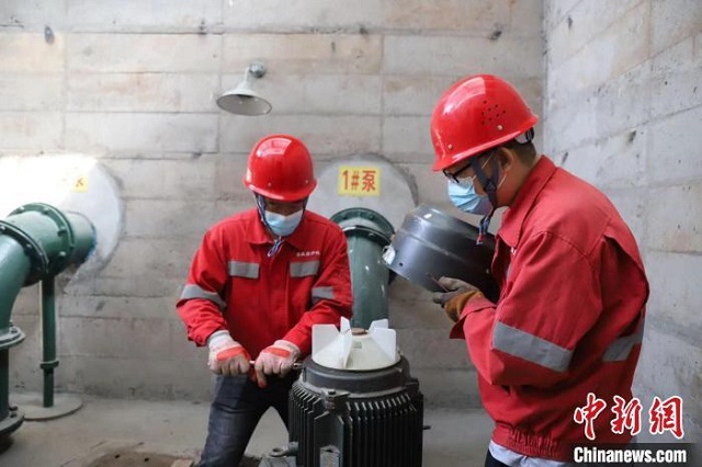 圖為邢臺市城市排水防澇工作人員檢修排水泵。(資料圖) 河北省住房和城鄉(xiāng)建設廳供圖