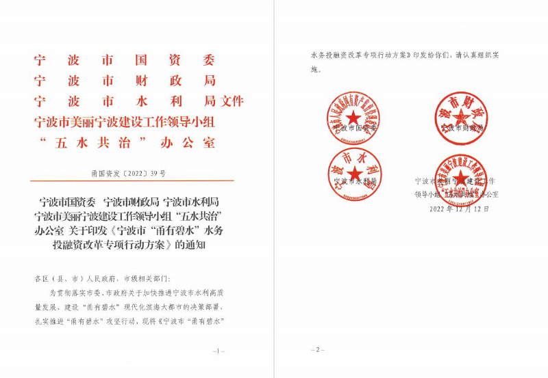 為加快推進(jìn)寧波市水利高質(zhì)量發(fā)展、建設(shè)“甬有碧水”現(xiàn)代化濱海大都市,市國(guó)資委、市水利局、市財(cái)政局、市“五水共治”辦等四部門(mén)聯(lián)合出臺(tái)《寧波市“甬有碧水”水務(wù)投融資改革專項(xiàng)行動(dòng)方案》(以下稱《行動(dòng)方案》)。