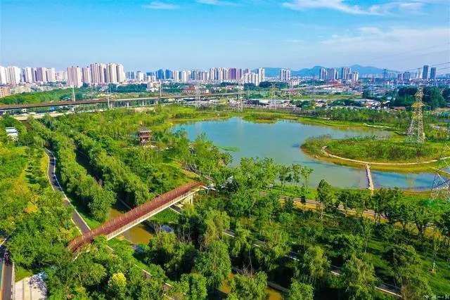 6月6日,航拍新建成的“水淹七軍公園”。這是襄陽最大的海綿城市公園,占地約21公頃,以三國時期“水淹七軍”的故事為主題,打造花海戶外運動區、三國文化展示區和濕地浮島游賞區。近日,襄陽入選全國第三批系統化全域推進海綿城市建設示范城市,成為繼孝感、宜昌之后,我省第三個國家級海綿示范城市。