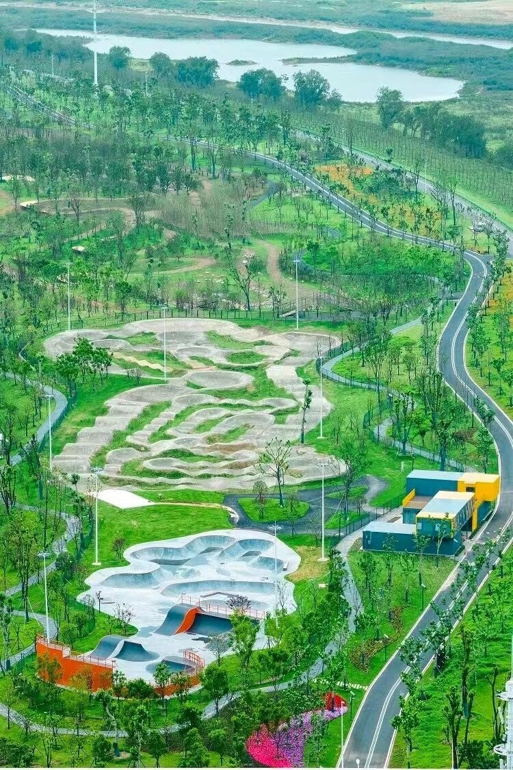 梧桐雨最高點杜鵑溪谷,是結合府河沿岸原有地形高差,由場內渣土“二次利用”堆積的小山。