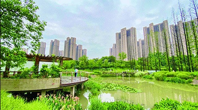 乍一看只是一處普通的公園,卻處處隱藏著小“海綿”:兼具生態(tài)蓄水和凈水功能的跌水梯田和濕地水塘、滲水效率極強(qiáng)的透水鋪裝、可以過濾雨水的植草溝、能涵養(yǎng)水源的雨水花園……這就是南京市棲霞區(qū)寅春路海綿公園。