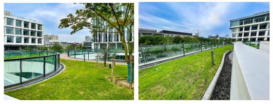 通過“園區+海綿”,打造“碧水環洲”的花園式科技園區。項目應用海綿技術包括: