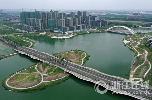 近年來(lái),杭州進(jìn)一步加大海綿城市建設(shè)力度。本組圖片為8月15日記者用無(wú)人機(jī)鳥(niǎo)瞰杭州錢(qián)塘區(qū)東湖防洪調(diào)蓄湖配套工程一期,其北岸的濱水空間“樣板段”已基本完工。該項(xiàng)目水域面積約34.5萬(wàn)平方米,陸域面積約29.72萬(wàn)平方米,涵蓋綠地面積約21.8萬(wàn)平方米。公園以生態(tài)建設(shè)為核心,用多種植物打造水上森林、浩瀚蘆葦灘等特色景觀(guān),延續(xù)生態(tài)野趣的濕地風(fēng)貌,具備水質(zhì)涵養(yǎng)及氣候調(diào)節(jié)等生態(tài)功能。