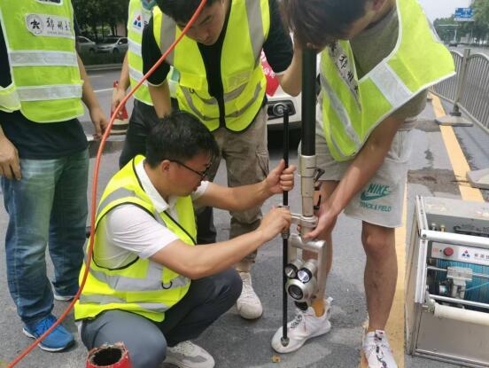 李斌還堅持長期深入工程一線,帶領(lǐng)研究生參與鄭州市老舊污水管道隱患排查、鄭州新鄭機場北飛行區(qū)跑道隱患檢測、鄭徐高鐵路基沉降應(yīng)急搶險等多項重大工程,踐行了領(lǐng)導(dǎo)人“把論文寫在祖國大地上”的號召。2021年7月20日,鄭州市遭受極端暴雨襲擊,引發(fā)洪災(zāi),導(dǎo)致城市道路塌陷頻發(fā),造成重大社會影響。李斌帶領(lǐng)由研究生與本科生組成的道路空洞與管網(wǎng)應(yīng)急搶險隊伍,不畏艱險、不分晝夜,先后排查了鄭州航空港區(qū)、經(jīng)開區(qū)、中牟縣、滎陽市四個地區(qū)重點路段,共檢測城市道路299公里,布設(shè)雷達測線663公里,查明各類道路下方隱患150余處,并將檢測結(jié)果及時上報當(dāng)?shù)氐缆分鞴懿块T,保障了居民出行安全。事后,鄭州市城市管理局、中牟縣、滎陽市、航空港區(qū)等區(qū)縣城管局紛紛向鄭州大學(xué)發(fā)來錦旗和感謝信,感謝鄭州大學(xué)師生對于當(dāng)?shù)貫?zāi)后重建工作的支援和幫助。