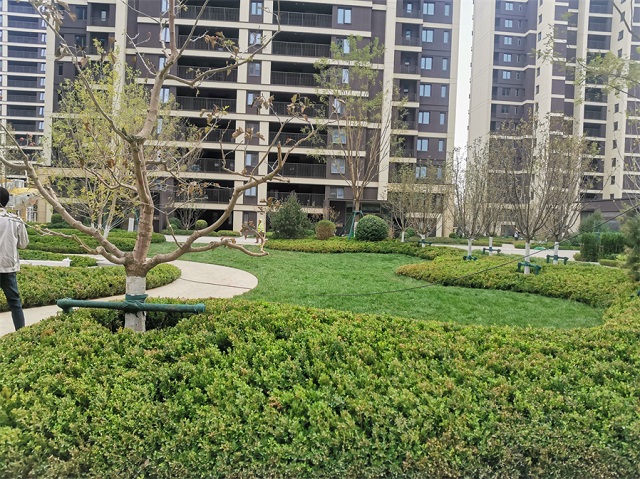 綠城集團天津桂語聽瀾項目位于空港經濟區環河東路與東八道交口處,項目類型為住宅小區,可用地面積61808.8平方米,通過設置下凹綠地、透水鋪裝等海綿設施,同樣實現了年徑流總量控制率≥75%的目標。該項目道路均為平緣石,硬質鋪裝豎向高于周邊綠地,雨水自然找坡匯流到下凹綠地內。在滿足排水要求的同時,該項目也強調與景觀緊密結合,喬木種植區局部下凹,景觀休憩區整體下凹,微地形起伏環繞,在有限的用地空間內平衡功能與景觀需求,實現土地的高效利用,既能保護景觀植物,又能創造更多的層次和調蓄空間,豐富景觀效果,實現人與自然和諧共處。