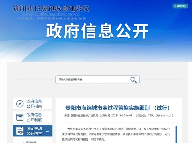 近日,貴陽(yáng)市住房和城鄉(xiāng)建設(shè)局發(fā)布貴陽(yáng)市海綿城市全過(guò)程管控實(shí)施細(xì)則(試行)。