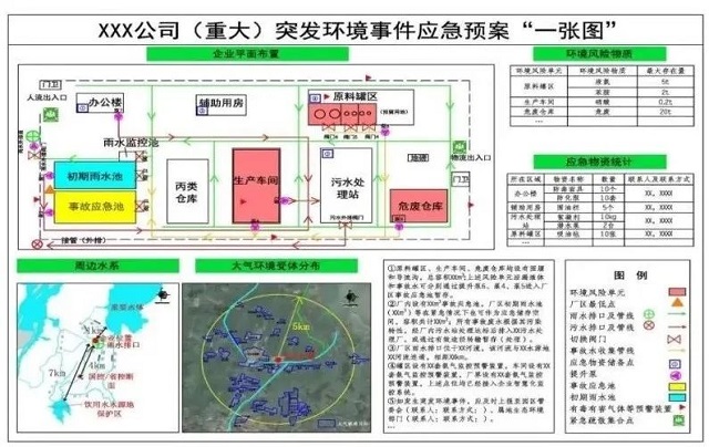 “「一圖」是指突發環境事件應急預案圖,包括單位環境風險單元及主要環境風險物質、環境應急防控設施分布等內容。「兩單」是指環境風險辨識清單、環境風險防范措施清單;「兩卡」是指環保安全責任承諾卡(主要負責人、環保負責人)、應急處理卡。”小吳解釋道。