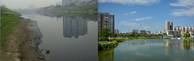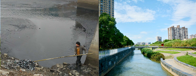 穿紫河七里橋段海綿城市建設(shè)前后對比照