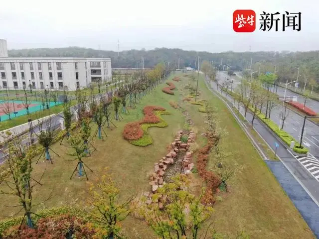法治園區配套道路及環境提升工程位于南京市江北新區沿山大道以東,浦鎮大街以南。在完善片區路網的同時,該項目因地制宜布局下凹綠地、透水鋪裝、植草溝、溢流式雨水口、滲透管等海綿設施,通過觀賞花草種植、天然石鋪地、植物組團點綴等形式打造特色旱溪景觀,實現生態功能與景觀效果的統一。