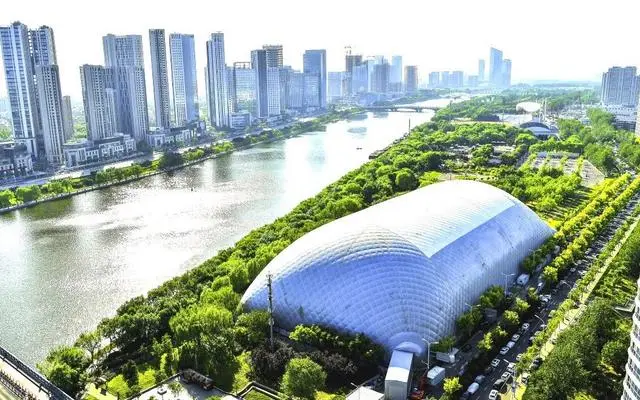一是規(guī)模最大。氣膜長165米、寬80米、高37米,氣膜內(nèi)最大凈高差達60米,建筑面積13200平方米,氣膜展開面積達21000平方米。