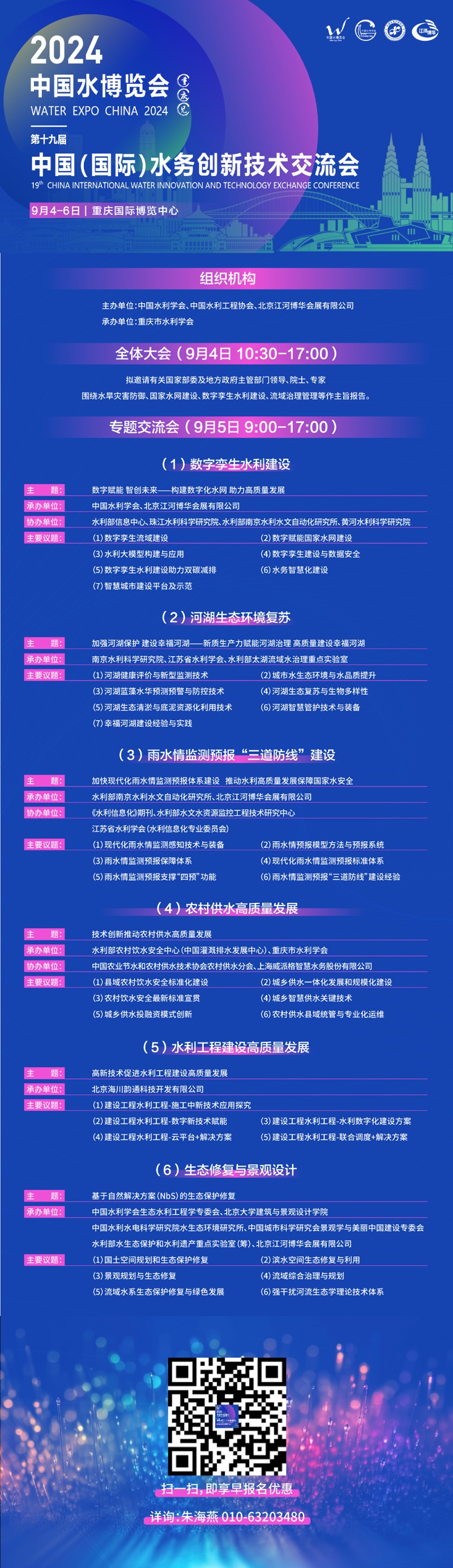 六大主題分會聚焦水利行業(yè)熱點,盡在9月4-6日,第十九屆中國(國際)水務創(chuàng)新技術交流會