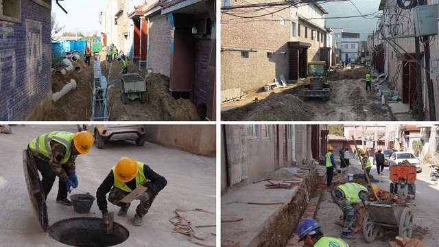 走近牟家坪村和鄭家莊四隊,街道、小巷、房屋旁施工人員還在高效有序地進行施工作業(yè),隨處可見開挖基槽、鋪設(shè)管道、道路拓寬的忙碌施工場景。截至目前,項目已完總進度的約55%,鋪設(shè)雨水管道914米,污水管道5123米,建成檢查井281座,對街巷內(nèi)的旱廁、違章建筑進行了拆除改造,硬化拓寬道路2717米。