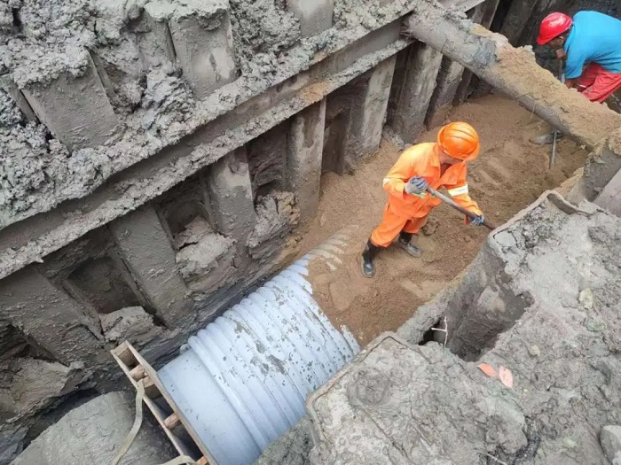 把原來(lái)這里的600~800的管子改成1000~1400管徑的管子接入后面的萬(wàn)榮路口一個(gè)窨井以后,直接接入到江場(chǎng)北的雨水泵站,使我們的下閘道這一段的積水,得到明顯的改善。惠及到整個(gè)市北高新園區(qū)、大寧地區(qū),對(duì)這兩個(gè)南北片區(qū)通行能力有一個(gè)很大的提高。