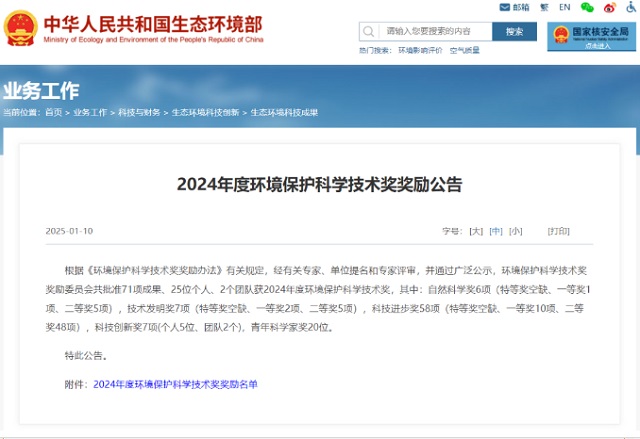 環(huán)境保護(hù)科學(xué)技術(shù)獎(jiǎng) 該獎(jiǎng)項(xiàng)是由生態(tài)環(huán)境部主管的國家環(huán)保領(lǐng)域最高獎(jiǎng)項(xiàng),旨在獎(jiǎng)勵(lì)在環(huán)境保護(hù)科學(xué)技術(shù)活動(dòng)中做出突出貢獻(xiàn)的單位和個(gè)人,調(diào)動(dòng)廣大環(huán)??茖W(xué)技術(shù)工作者的積極性和創(chuàng)造性,促進(jìn)環(huán)??萍际聵I(yè)發(fā)展,其科學(xué)性、公正性和權(quán)威性得到社會(huì)各界的廣泛重視和支持。