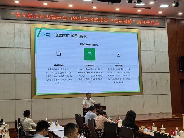 今年是綠水青山就是金山銀山理念提出20周年。近日,由西南政法大學、生態環境部環境與經濟政策研究中心主辦的“落實綠水青山就是金山銀山理念的政策與法治保障”研究交流會在重慶市舉行。會上,廣東省東莞市生態環境局黨組成員、副局長王鑫以《小切口、小快靈:東莞市零散工業廢水管理的立法創新》為題作主題發言,向與會專家學者分享東莞市零散工業廢水管理的法治經驗。
