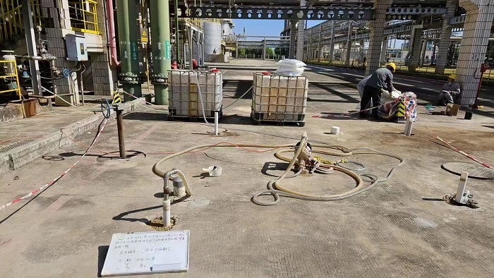 一套防腐防滲“全壽命周期管理”制度。開展綠色化改造時,為解決惠州大亞灣海邊高濕高鹽晝夜溫差大等氣候條件導致的涂層壽命短、防腐防滲作用失效快等問題,企業探索選用更耐用、機械性能更優的環氧樹脂(E-44)涂料,替代原先使用的乙烯基玻璃鱗片涂料作為防腐防滲涂層。同時將涂層巡查、壽命記錄與定期維護納入日常管理,確保了企業防腐防滲涂層在其壽命周期內持久有效,鞏固源頭“堵”的效果。