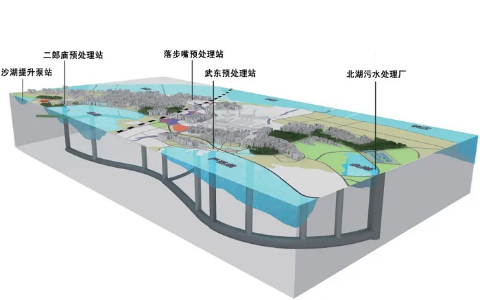 武漢大東湖深隧則展現(xiàn)了工程的規(guī)模效應(yīng)。作為當(dāng)前國內(nèi)傳輸流量最大、輸送距離最長的污水深隧,其平均埋深超30米,最大限度減少了對(duì)淺層空間的影響。主隧全長17.5公里,覆蓋武昌、洪山、青山和東湖風(fēng)景區(qū)四個(gè)行政區(qū)。該系統(tǒng)可將半個(gè)武昌的污水運(yùn)送至主城區(qū)外的北湖污水處理廠,服務(wù)大武昌片區(qū)130平方公里內(nèi)約300萬居民。自2020年9月運(yùn)行以來,該工程累計(jì)輸水量已突破9億噸(相當(dāng)于7.5個(gè)東湖水量)。這項(xiàng)工程創(chuàng)新采用“污水走隧道、地上建花園”的集約化模式,既保障污水收集處理,又節(jié)省了中心城區(qū)寶貴土地。運(yùn)行方面,通過智慧運(yùn)營系統(tǒng)、健康監(jiān)測(cè)、無人機(jī)巡線及水下機(jī)器人等技術(shù)手段,實(shí)現(xiàn)了對(duì)深隧的智能化運(yùn)維管理。這些技術(shù)手段有助于及時(shí)發(fā)現(xiàn)隱患、保障設(shè)施安全運(yùn)行,為城市安全度汛提供重要支撐。