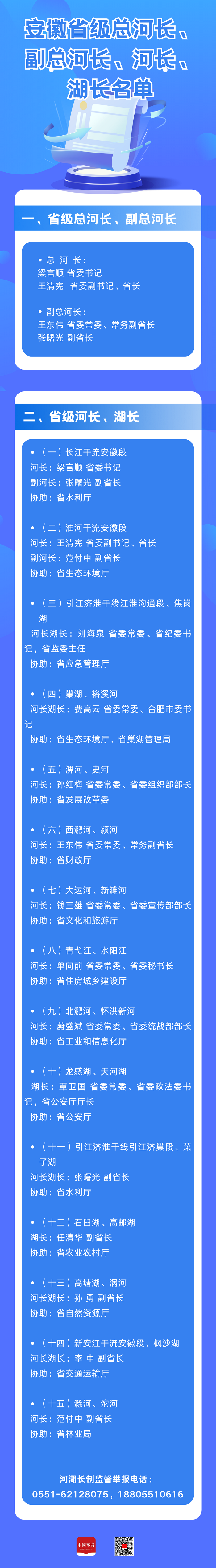 近日,安徽省人民政府官網(wǎng)發(fā)布《安徽省級總河長、副總河長、河長、湖長名單》,明確省級河湖長責(zé)任分工,涵蓋長江、淮河、巢湖等重點江河湖泊,構(gòu)建起高位統(tǒng)籌、分級負(fù)責(zé)、部門協(xié)同的河湖管護(hù)體系。